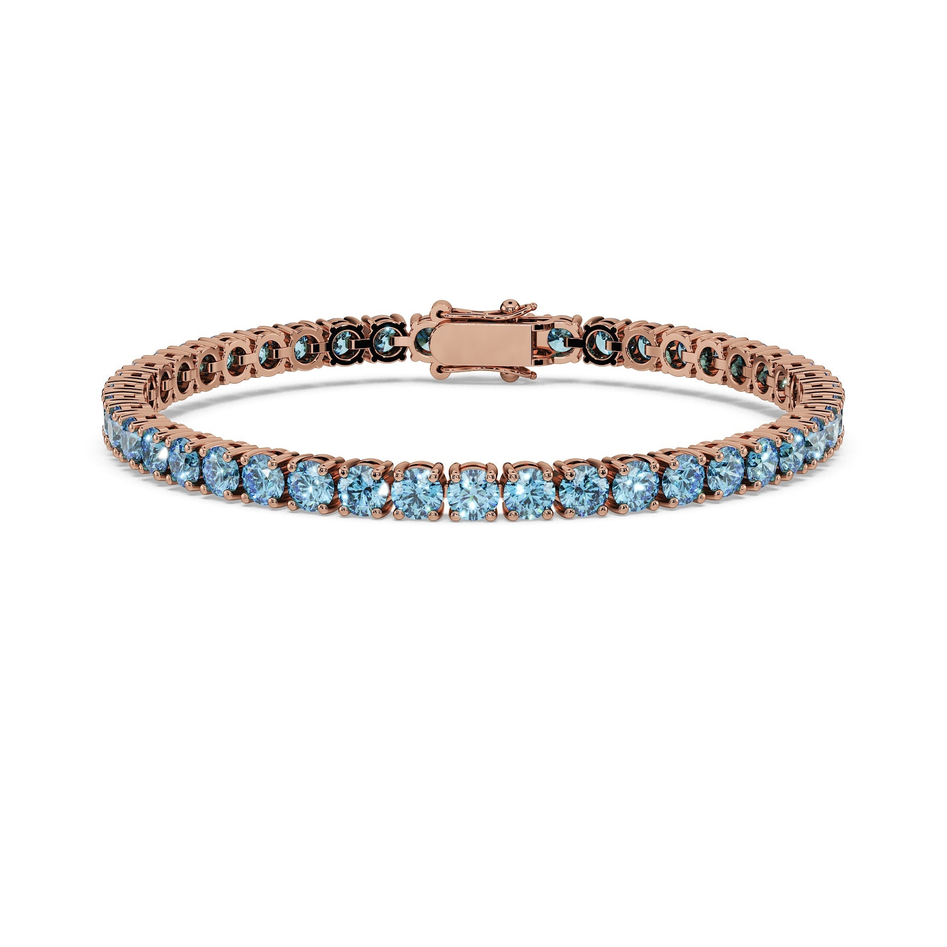 In nature, blue diamonds of such delicate clarity are among the rarest of all gems. Creating a full bracelet from them would be nearly impossible, valued in the millions. Through the mastery of laboratory creation, this wonder is now attainable: pure diamonds, chemically and optically identical to mined stones, yet perfected under ideal conditions.