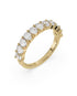 This exquisite ring features eleven radiant oval-cut diamonds aligned along half of the band, creating a continuous flow of brilliance and light. The elongated oval shapes bring refined sophistication, while the design transitions seamlessly from the diamond-adorned section to a smooth, polished gold band for perfect balance between sparkle and simplicity.