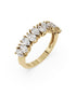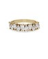 This exquisite ring features ten stunning pear-shaped lab diamonds gracefully cascading along half of the band, creating a captivating flow of brilliance. The elegant design seamlessly transitions from the diamond-adorned section to a smooth, polished gold band, offering the perfect balance of sparkle and sophistication.