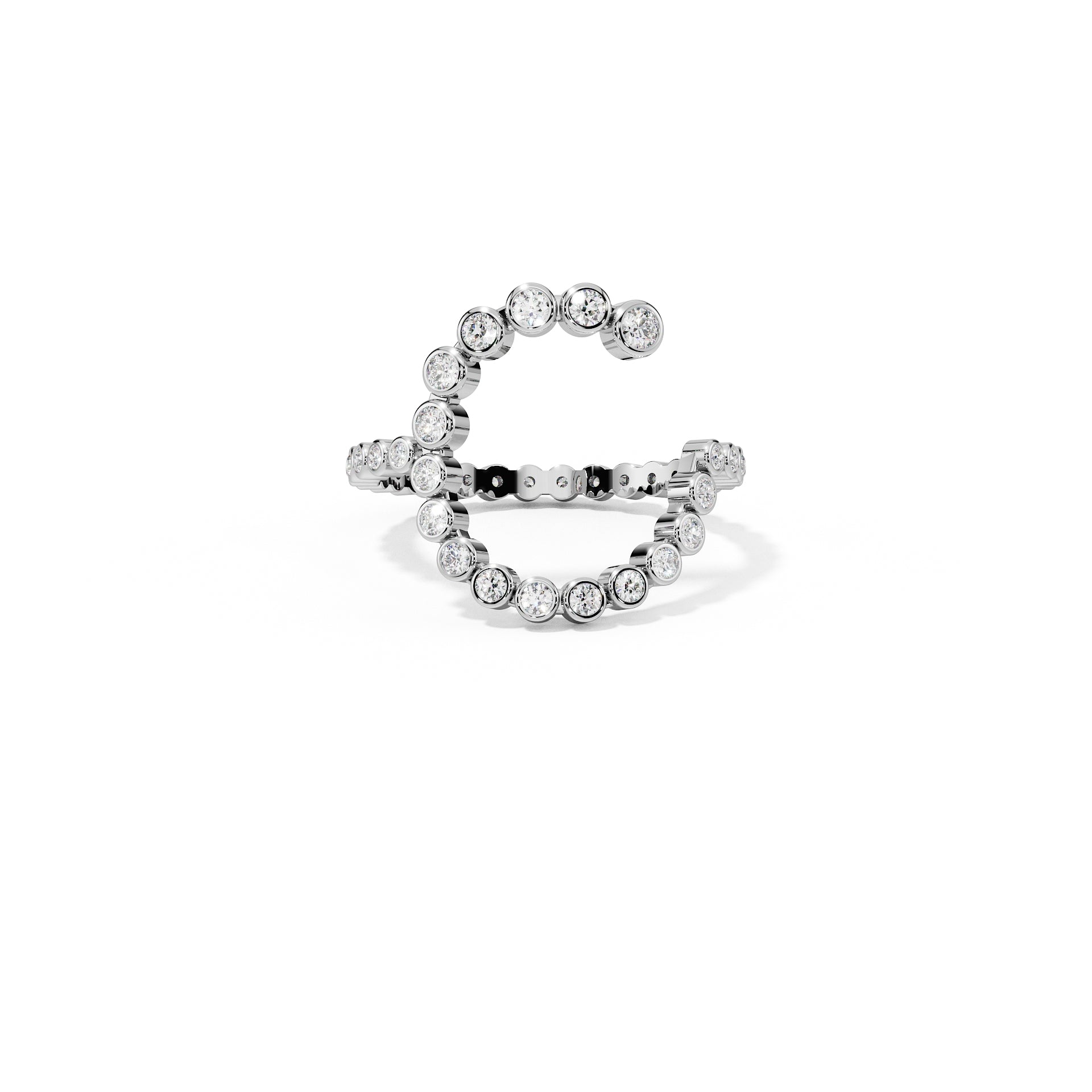 The Design Each letter is sculpted from individually set lab diamonds, creating a three-dimensional initial that appears to float on your finger. The organic flow of diamonds catches light at every angle, making your chosen letter shimmer with unmistakable brilliance. Available in all 26 letters - because every story deserves to be told.