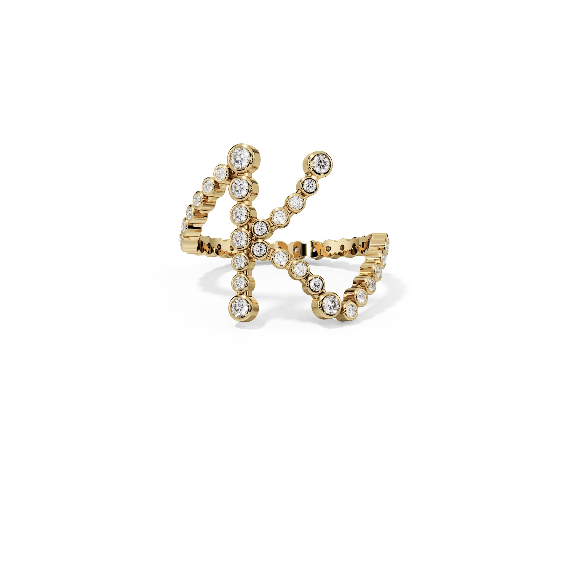 Your letter, your statement. This architectural initial ring transforms a single character into a piece of personal luxury, crafted entirely from brilliant lab-grown diamonds set in your choice of gold.